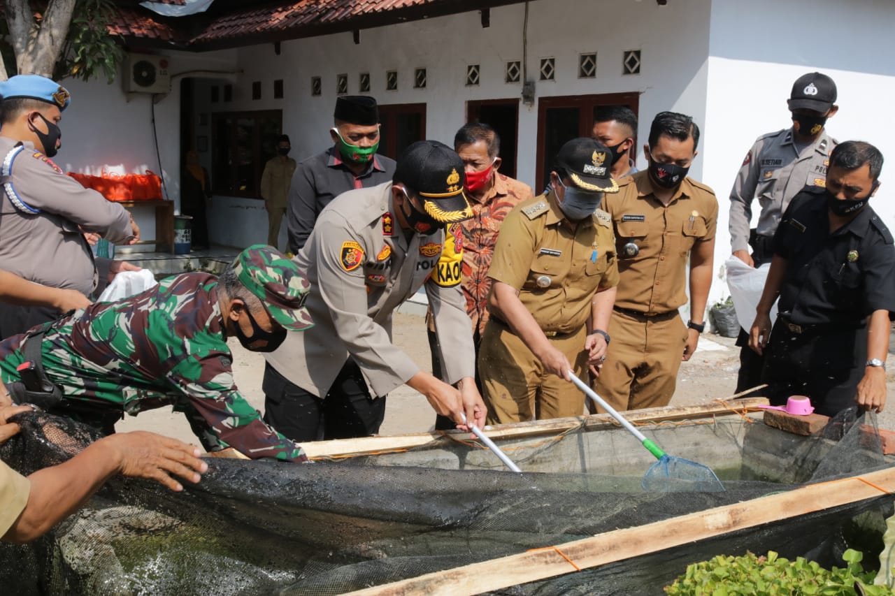 Tingkatkan Ketahanan Pangan, Kapolres Majalengka Panen Ikan Lele di Desa Tangguh
