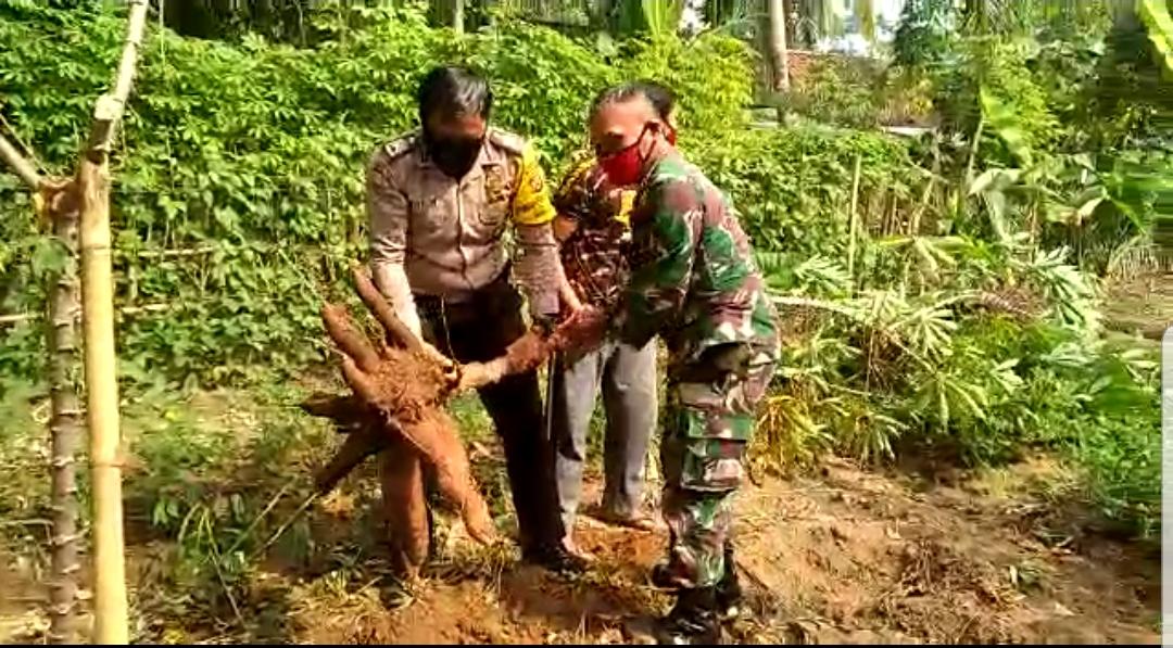 Berita Mapolres Banjar –TNI Polri di Wilayah Langensari Kota Banjar tepatnya Babinsa Kel. Bojongkantong Koramil 1325/Langensari Kodim 0613/Ciamis Peltu Taryono dan Bhabinkamtibmas Kel. Bojongkantong Polsek Langensari Polres Banjar Bripka Dedi Wahyudi sinergi bersama masyarakat panen tanaman palawija. (21/7/2020) Kebun milik Bapak Muhsinin warga lingk. Langkaplancar Kel. Bojongkantong Kec. Langensari Kota Banjar tersebut ditananami tanaman palawija antara lain, singkong, terong, dan umbi-umbian.
