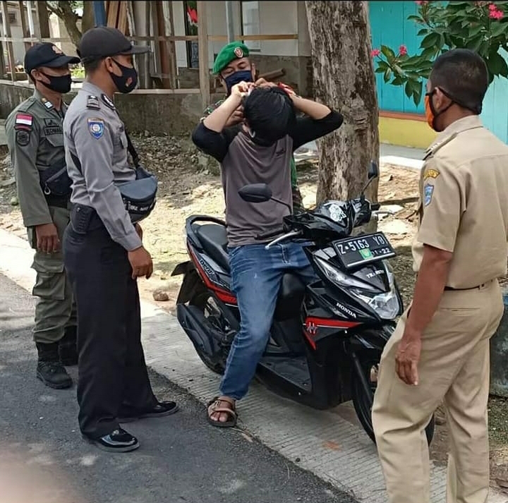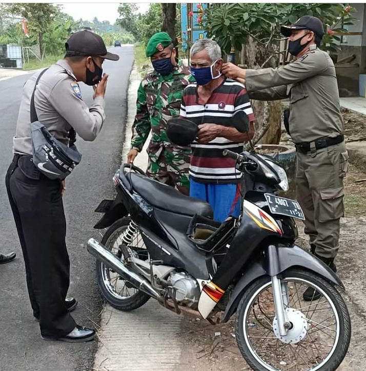 Setidaknya 10 anggota gabungan Polsek, Bhabinsa dan ibu-ibu PKK  dan Sat Pol PP Kecamatan Pataruman langsung ke jalan datangi para pengguna jalan yang tidak menggunakan masker dan langsung membagikan masker Gratis untuk dipakai guna pencegahan Penularan Covid-19.
