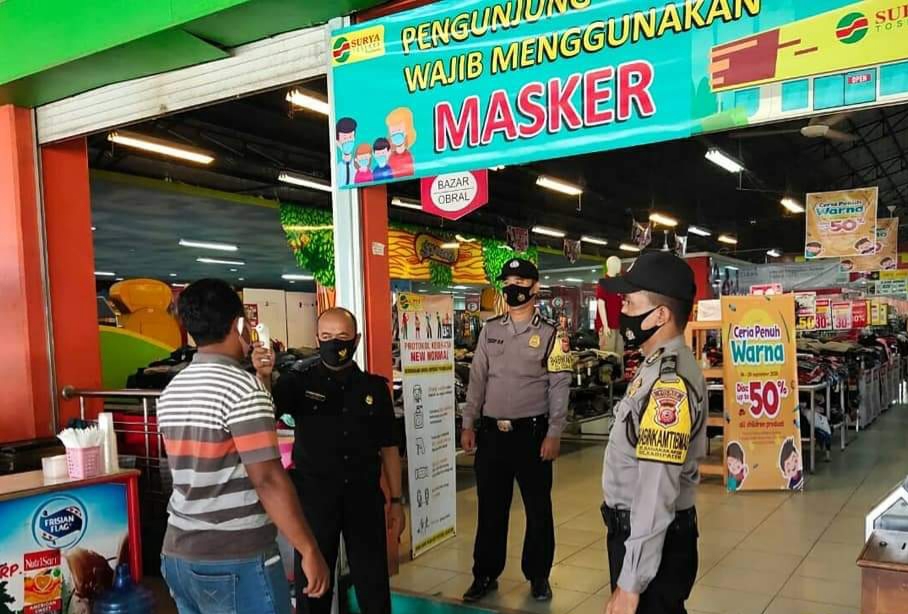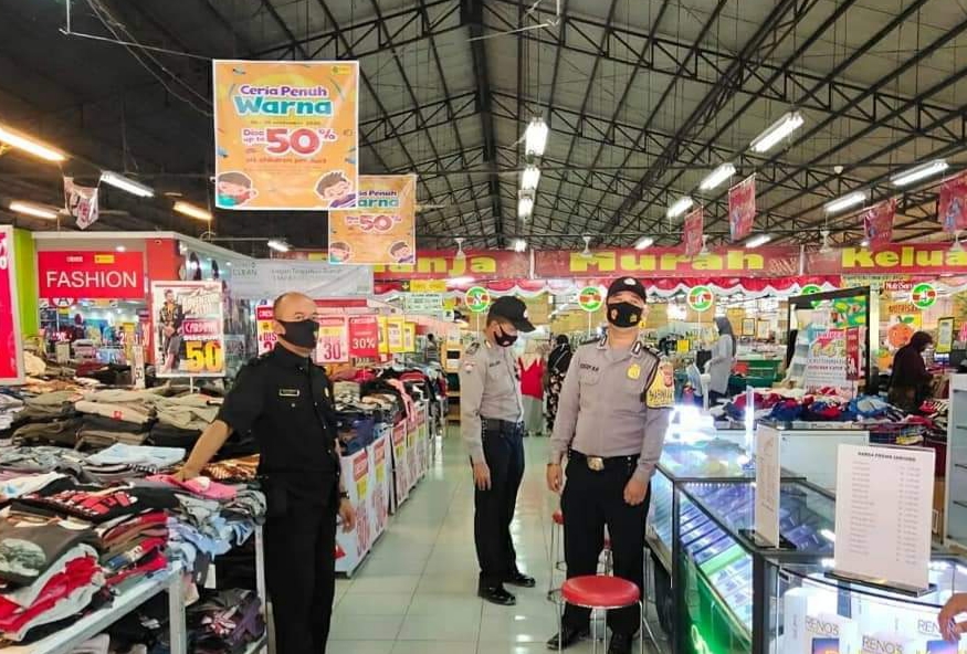 Berita Mapolres Majalengka–  Dalam Upaya mencegah penyebaran Covid-19 di Majalengka terus dilakukan baik oleh pemerintah, Anggota Polsek Kadipaten Polres Majalengka memantau sekaligus mensosialisasikan 3M atau Memakai Masker, Mencuci Tangan, Menjaga Jarak pada pengunjung Swalayan Toserba Surya Kadipaten, Minggu (20/9/2020).
