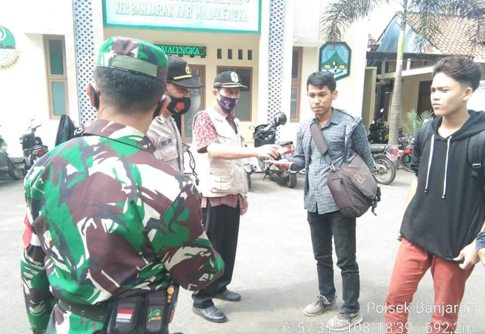 Berita MaPolres Majalengka – Jajaran Polsek Banjaran Polres Majalengka bersama tim gugus tugas Covid 19 Kecamatan Banjaran, koramil, Sat Pol PP Kecamatan Banjaran dan instansi terkait terus melaksanakan Operasi Yustisi, Bertempat di jln Raya Desa Cimeong tepatnya depan kantor desa cimeong Kecamatan Banjaran Kabupaten Majalengka, Jum’at 10/10/2020.