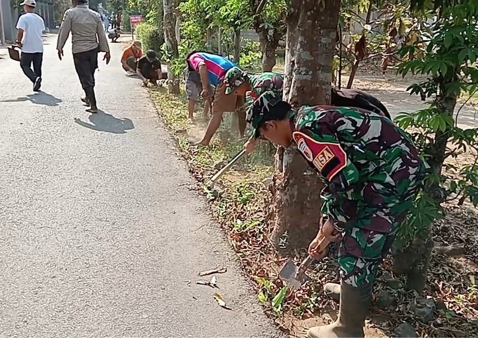 Kegiatan yang dimulai sejak pagi hari ini difokuskan pada pembersihan bahu jalan, pemotongan rumput liar yang mulai meninggi, serta pembersihan saluran drainase. Kopka Slamet Prasetiyo tampak membaur bersama masyarakat, bahu-membahu mengangkut sampah dan memastikan aliran air tidak tersumbat guna mengantisipasi genangan air di musim penghujan.