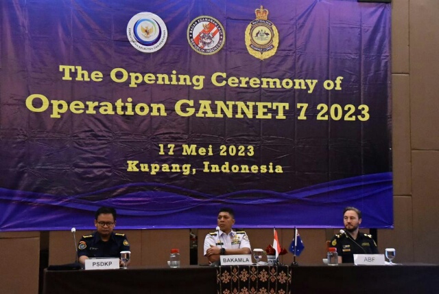 Baraknews Kupang 18 Mei 2023 — Bakamla RI kembali adakan Patroli Terkoordinasi Bilateral (Gannet Operation) bersama dengan Australian Border Force (ABF) dan Kementerian Kelautan dan Perikanan (KKP). Operasi Gannet 7/23 secara resmi dibuka Kepala Bakamla RI Laksdya TNI Dr. Aan Kurnia yang diwakili oleh Direktur Operasi Laut Laksma Bakamla Friche Flack, M.Tr.Opsla di salah satu hotel di Kupang, Rabu (17/05/2023).