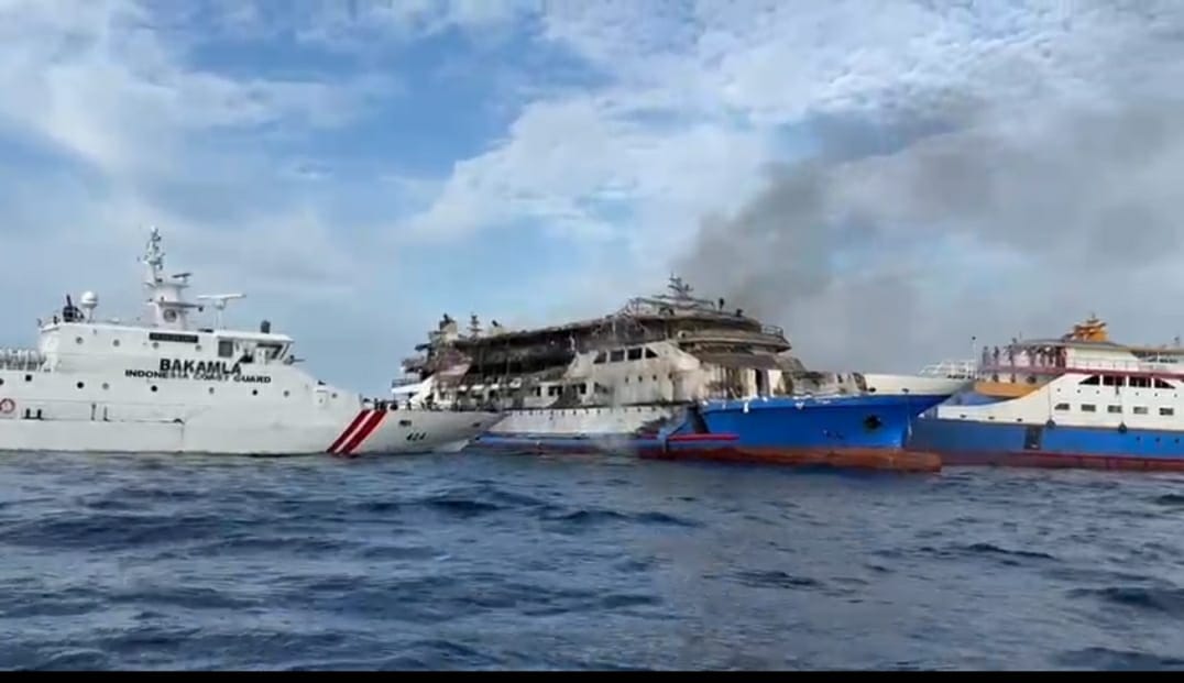 Bakamla RI Evakuasi Korban Kebakaran KMP Barcelona 5 di Perairan Talise