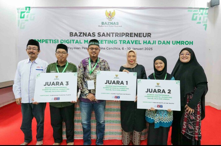 Jakarta– Badan Amil Zakat Nasional (BAZNAS) RI secara resmi menutup kegiatan Boothcamp santripreneur Kompetisi Digital Marketing Travel Haji dan Umrah, serta mengumumkan 10 peserta terbaik kompetisi tersebut, yang diselenggarkan di Yayasan Pesantren Bina Cendekia, Jakarta, Jumat (10/1/2024).
