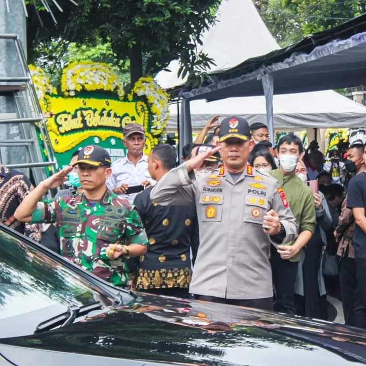 Dandim 0501/JP Letkol Inf Bangun I. E Siregar, S.H, MIPOL bersama Kapolres Metro Jakarta Pusat Kombes Pol Komarudin menyambut kedatangan Presiden RI Ir Joko Widodo beserta Ibu Iriana Joko Widodo melayat ke rumah duka.