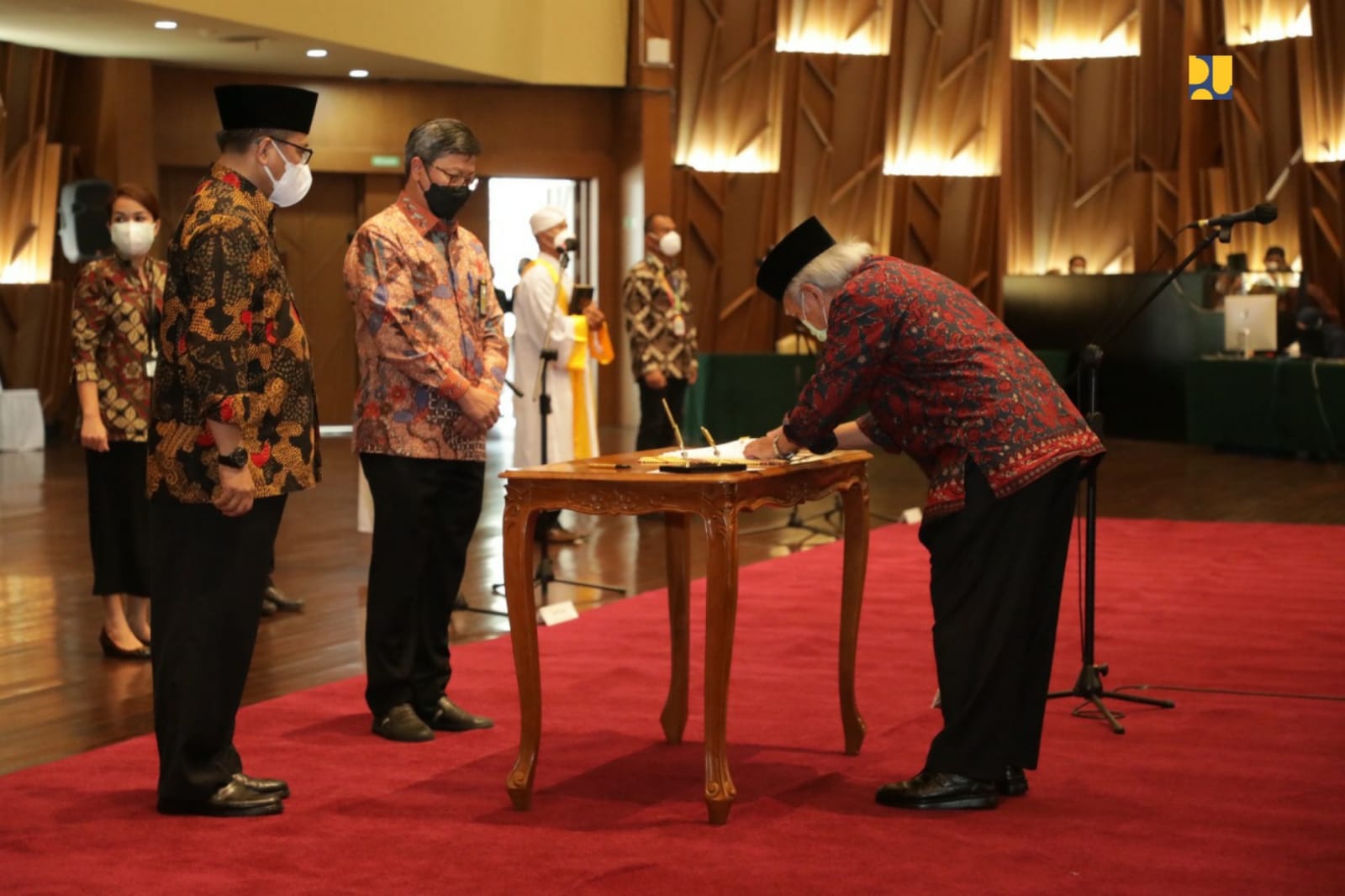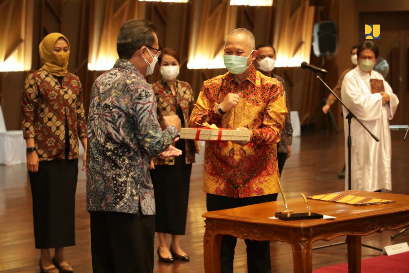 Pelantikan Pejabat Tinggi Madya tersebut berdasarkan Keputusan Presiden Republik Indonesia Nomor 107/TPA Tahun 2021 dan Pejabat Tinggi Pratama berdasarkan Keputusan Menteri Pekerjaan Umum dan Perumahan Rakyat Nomor 993/KPTS/M/2021.