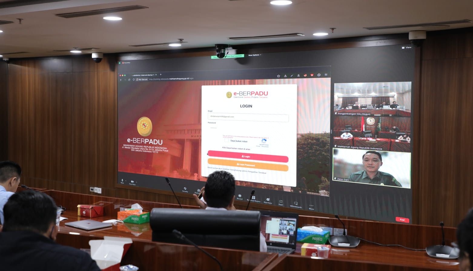 Selain itu, mantan Wakil Ketua Pengadilan Negeri jakarta Pusat itu menyampaikan bahwa Aplikasi e- Berpadu dikembangkan untuk mendukung SPPT-TI. Aplikasi ini diyakini dapat menjadi media pertukaran dokumen khususnya pada Lembaga peradilan di bawah Mahkamah Agung dengan Lembaga penegak hukum lainnya secara elektronik.