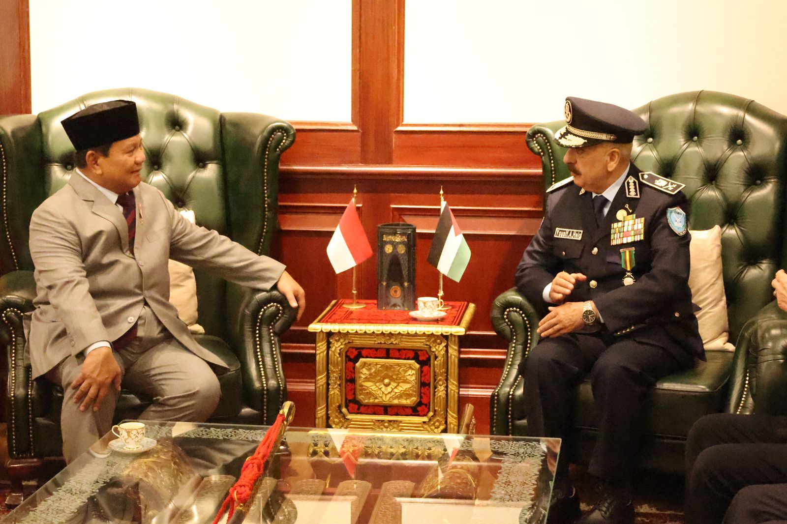 Baraknews Jakarta – Menteri Pertahanan RI Prabowo Subianto didampingi Wakil Menteri Pertahanan M. Herindra menerima kunjungan kehormatan dari Chief of Palestinian Police H.E. Major General Yousef Helo di Kemhan, Jakarta, Selasa (26/9/2023).