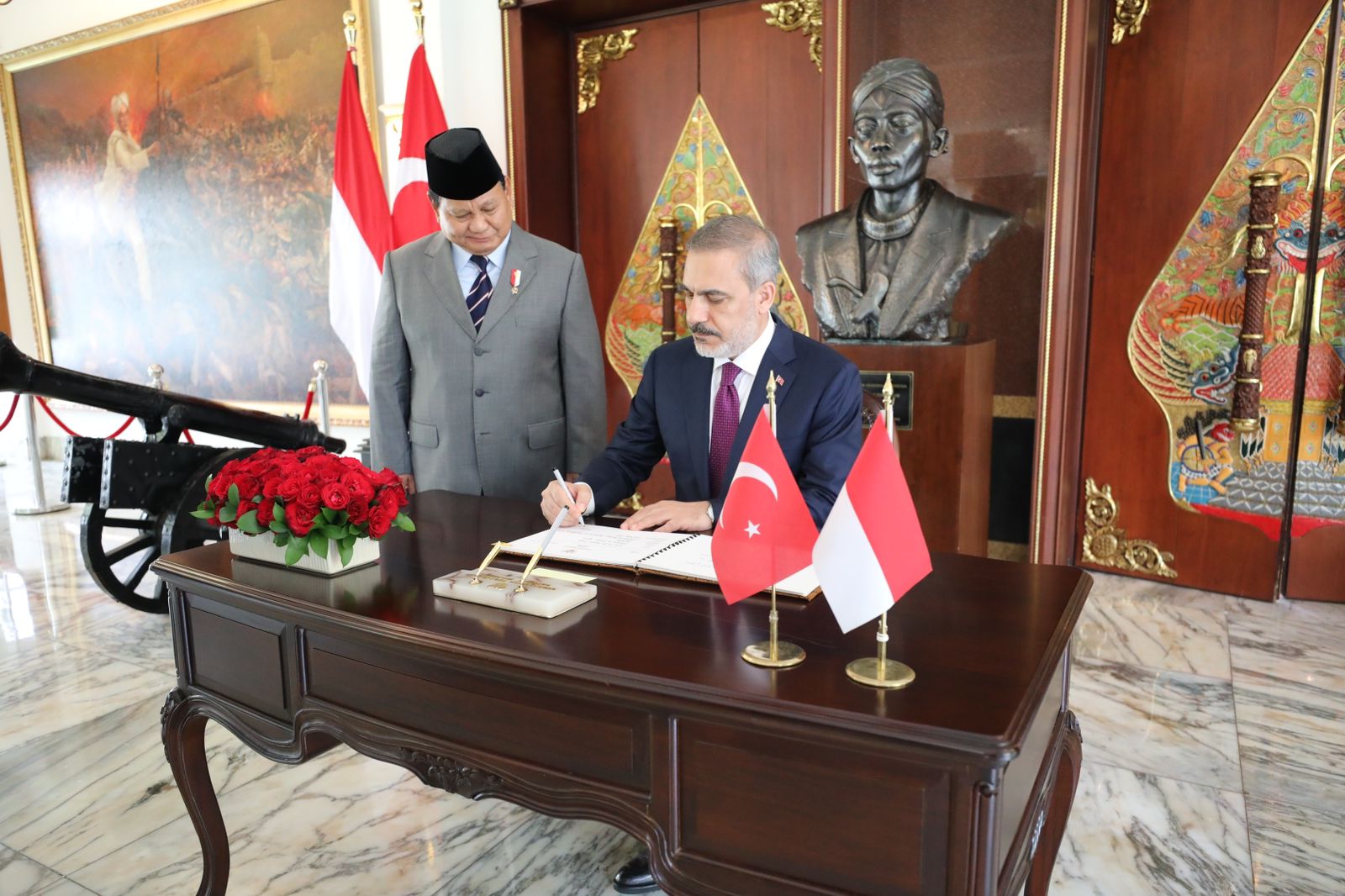 Jakarta – Menteri Pertahanan Prabowo Subianto menerima kunjungan Menteri Luar Negeri Turki H.E. Mr. Hakan Fidan di kantor Kemhan, Sabtu (15/7).