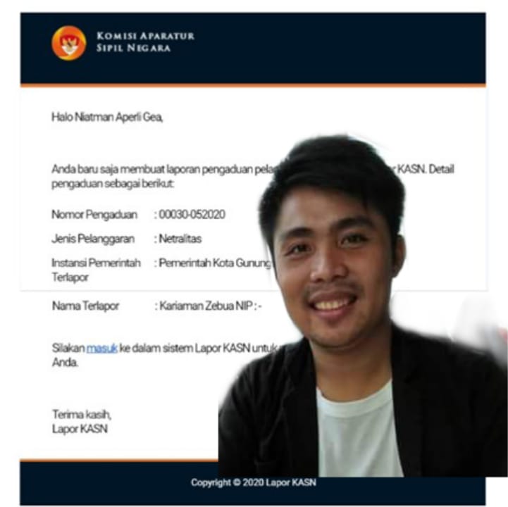 Mantan presiden Mahasiswa STIE Pemnas Nias Laporkan berinisial KS ke Komisi Aparatur Sipil Negara (KASN) karena diduga Melanggar kode etik Profesi dan disiplin PNS,