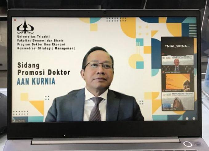 Selama 1,5 jam mempertahankan disertasi, Laksamana Madya TNI Dr. Aan Kurnia lulus dengan predikat Cum Laud dan menjadi doktor ke 500 Universitas Trisakti dan doktor ke 112 konsentrasi management strategik. Hadir tim penguji adalah Dekan Fakultas Ekonomi dan Bisnis Universitas Trisakti, Dr. Yolanda Masnita Siagian, MM, Ketua Konsentrasi Manajemen Strategik sekaligus promotor Prof.Dr. Willy Arafah, MM, DBA dan Dr. Kusnadi, MM selaku co-promotor, dan para penguji Prof. Dr. Yuswar Zainul Basri, Ak. MBA, Prof.Dr. Farida Jasfar, ME, Ph.D, Prof. Dr. S. Pantja Djati, M.Si, MA dan Dr. Suyono Thamrin, M.Eng.Sc, M.Tr.Opsla, CIQaR, CIQnR, IPU, CPHCM.