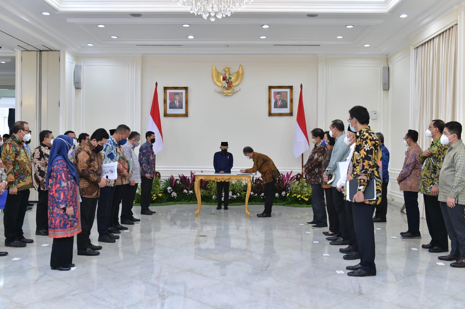 “Saya mengharapkan ada kolaborasi dan sinergi program antara kementerian koordinator dan kementerian/lembaga di bawahnya untuk dapat mewujudkan Indonesia sebagai pusat produsen halal dunia di tahun 2024,” ucap Wakil Presiden (Wapres) K.H. Ma’ruf Amin saat memimpin Rapat Pleno Komite Nasional Ekonomi dan Keuangan Syariah yang diselenggarakan di Istana Wakil Presiden, Jl. Merdeka Selatan No 6, Jakarta, Selasa (30/11/2021).