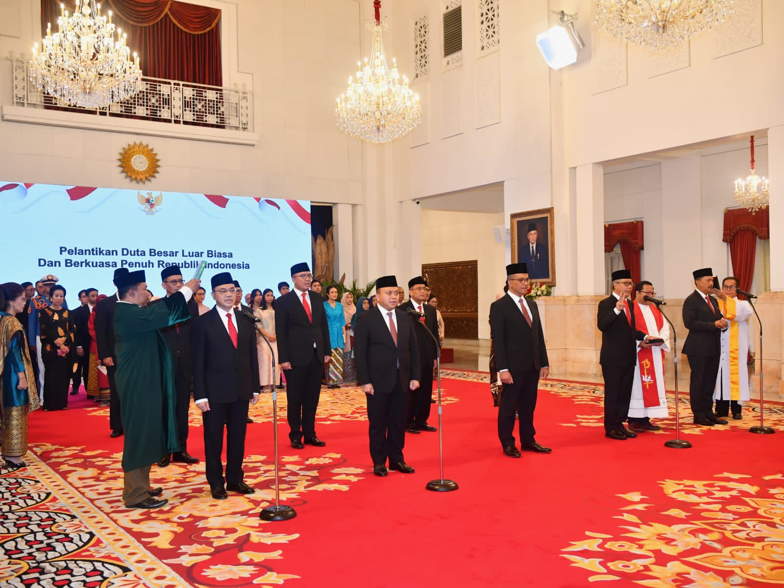 Dalam kesempatan tersebut, Kepala Negara mengambil sumpah bagi para dubes yang dilantik pada hari ini.