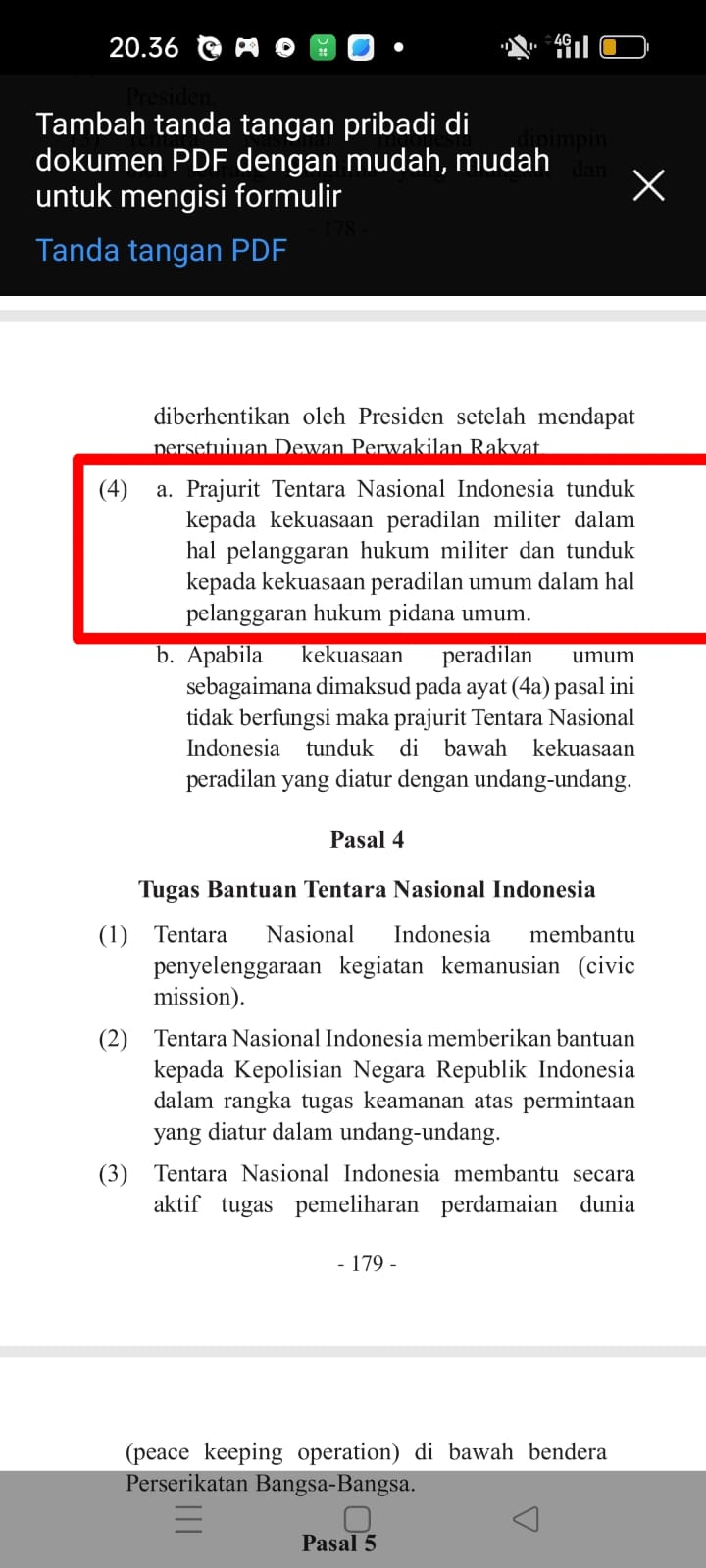 3. Pemerintah wajib mengevaluasi keberadaan prajurit TNI aktif di berbagai instansi sipil, terutama pada instansi yang jelas bertentangan dengan ketentuan yang diatur dalam UU TNI, karena hanya akan menimbulkan polemik hukum ketika terjadi pelanggaran yang dilakukan oleh prajurit TNI aktif tersebut. Seperti dugaan korupsi misalnya yang tidak bisa diusut secara cepat dan tuntas karena eksklusifisme hukum yang berlaku bagi prajurit TNI yang melakukan tindak pidana.
