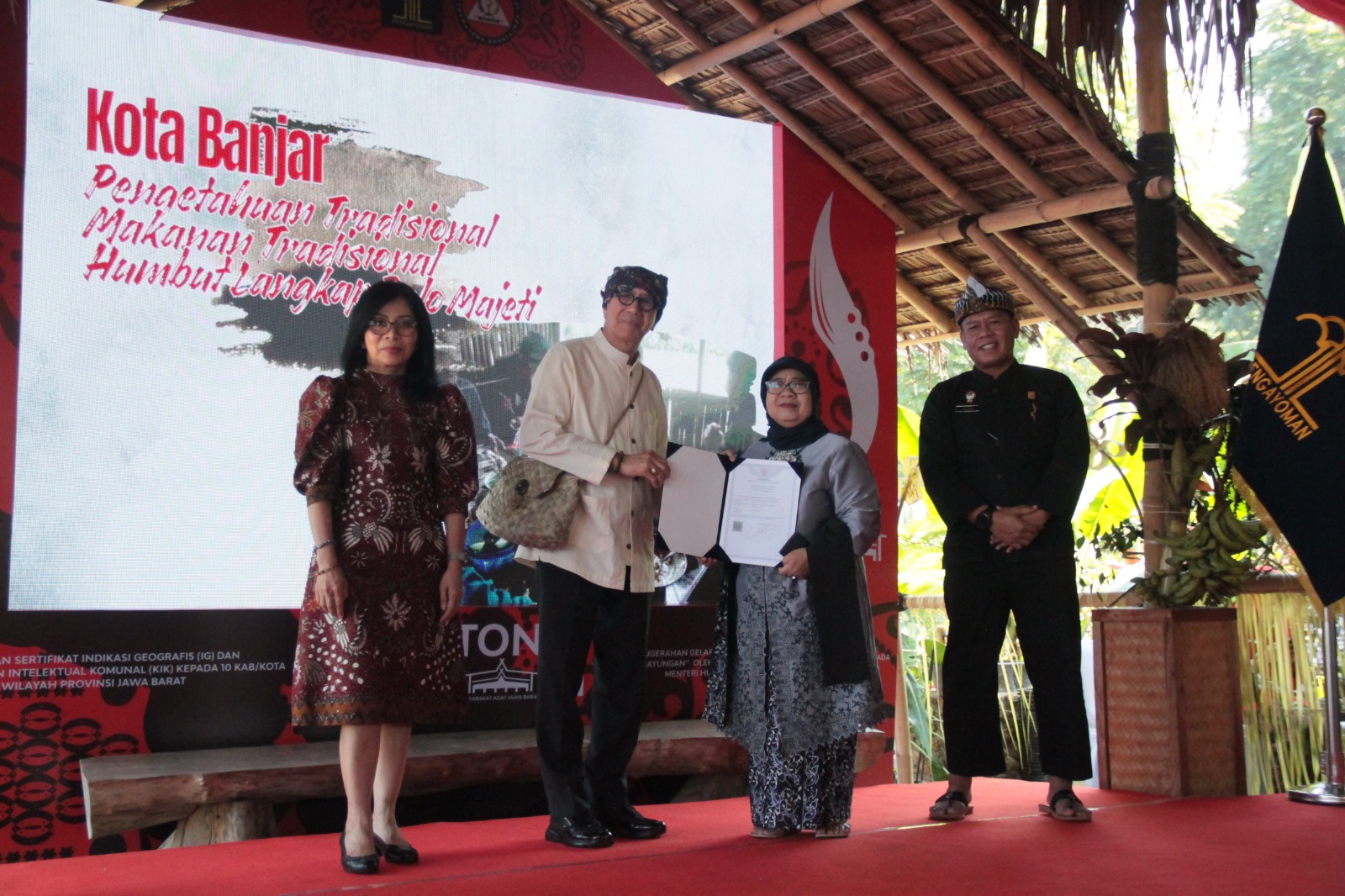 Bandung – Menkumham R.I Yasonna H. Laoly hari ini (Salasa, 23/07/2024) secara khusus menandatangani dan menyerahkan 35 (tiga puluh lima) Sertifikat Kekayaan Intelektual Komunal (KIK) Baresan Olot Masyarakat Adat (BOMA) untuk 10 Kota Kabupaten yaitu : Kab. Pangandaran, Kab. Bandung, Kab. Ciamis, Kab. Tasikmalaya, Kab. Sumedang, Kab. Sukabumi, Kabupaten Garut, Kota Banjar, Kota Cimahi, dan Kab. Bogor serta 1 (satu) Sertifikat Indikasi Geografis (IG) kepada Kab. Karawang (Kopi Robusta Sanggabuana) sebagai bentuk apresiasi mengakui dan menghargai kontribusi serta keberhasilan Masyarakat Adat Sunda dalam menjaga, melestarikan, dan mengembangkan Kekayaan Intelektual budaya mereka serta menguatkan komitmen dalam menjaga dan melestarikan keberagaman budaya di Indonesia khususnya di wilayah Jawa Barat. Penyerahan Sertifikat KIK dan IG ini dilaksanakan di Sekretariat BOMA JABAR Alam Sentosa, Kawasan Ekowisata dan Budaya Jawa Barat Jl. Pasir Impun Atas 5A Kabupaten Bandung.