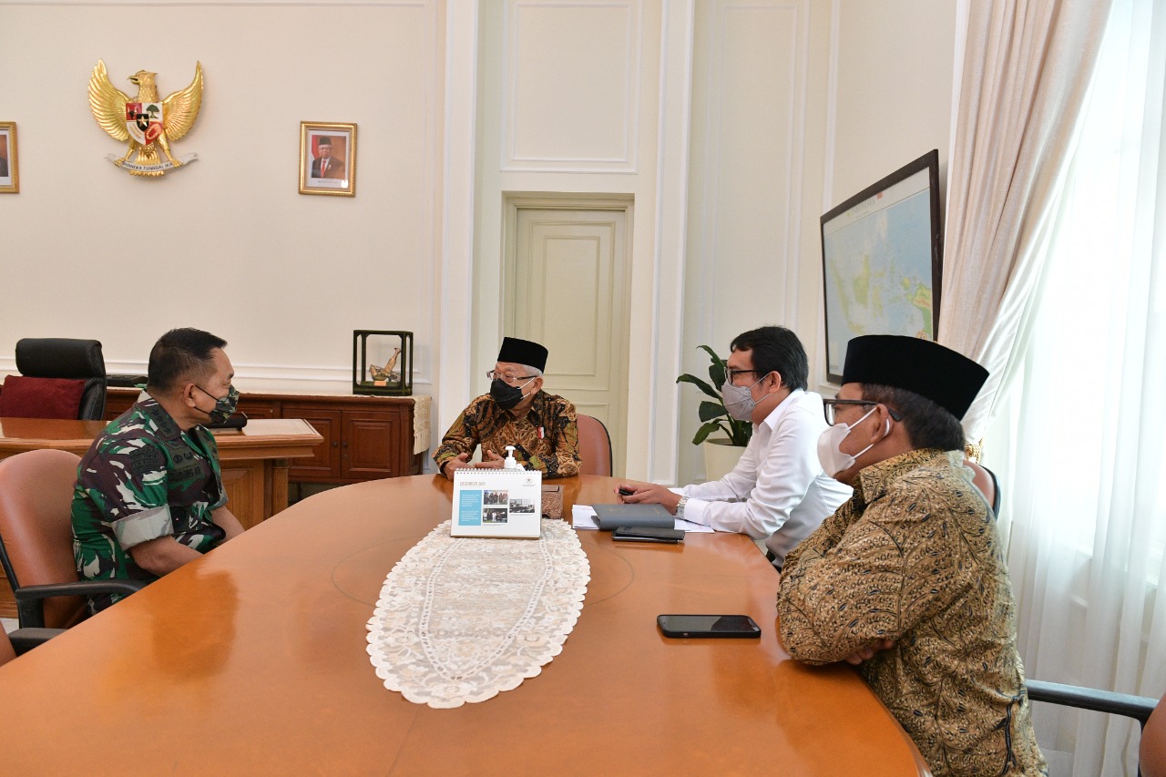 “Yang dikemukakan oleh Bapak KSAD ini memang sejalan dengan pikiran Bapak Wapres, dan dengan Bapak Andika ternyata gagasannya sama. Jadi, antara gagasan Wapres, KSAD, dan Panglima TNI itu _in line_,” jelas Masduki.