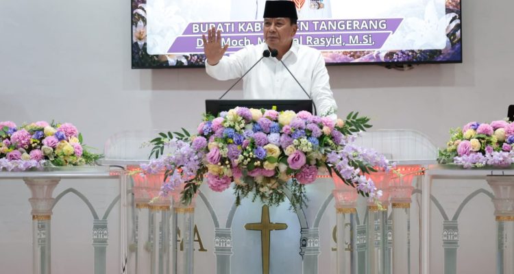 Tangerang,—Bupati Tangerang Moch. Maesyal Rasyid meninjau langsung lokasi banjir di Kampung Nyompok